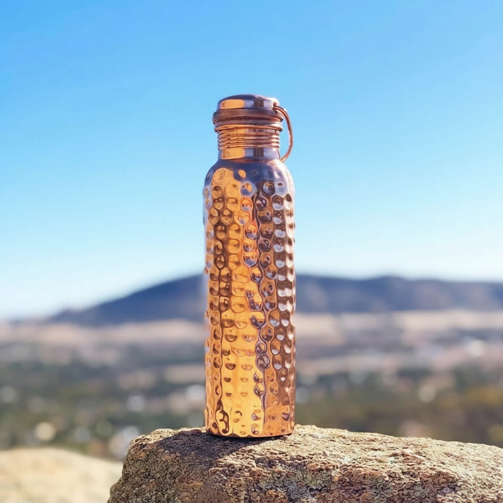 Copper bottles are natural, eco-friendly, and antimicrobial, helping purify water, boost immunity, and support digestion — unlike plastic, which can leach harmful chemicals over time.