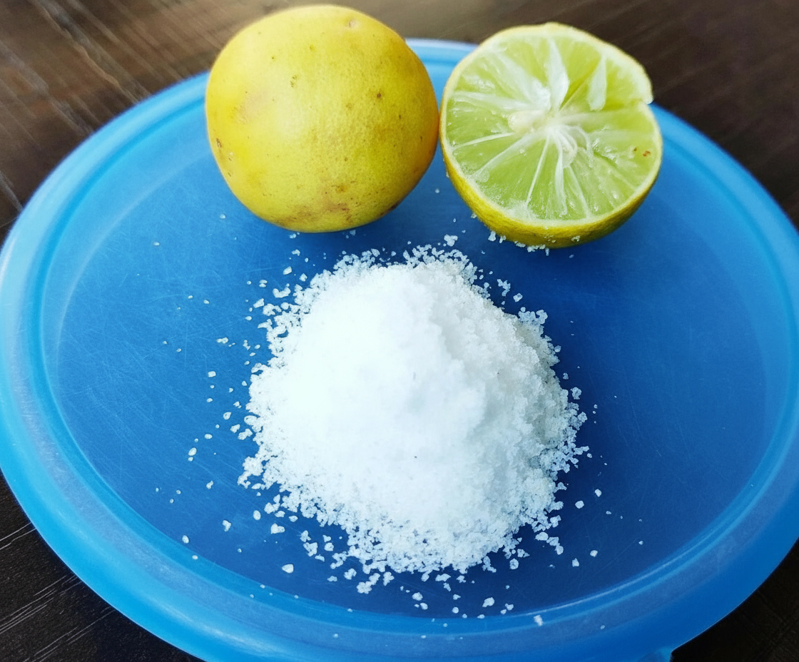 Weekly Clean: Mix 1 tablespoon of lemon juice (or vinegar) with 1 tablespoon of salt. Add a little water and shake the bottle well.
