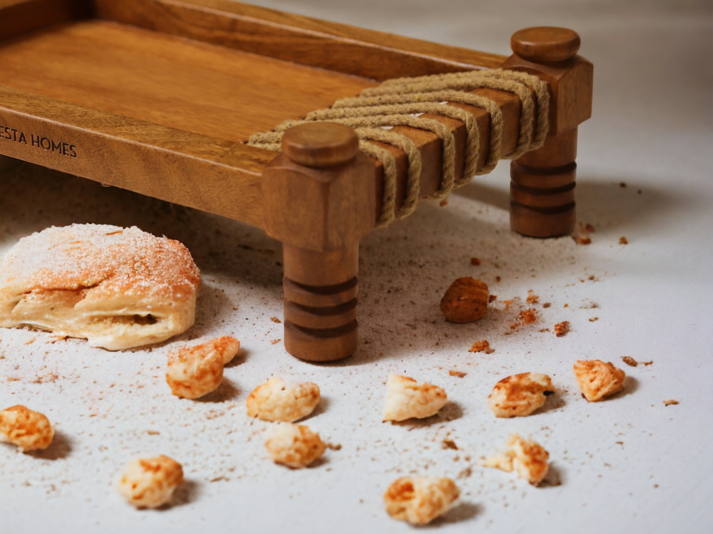 The product is handcrafted from 100% natural mango wood with sleek black metal frames for the chakla.